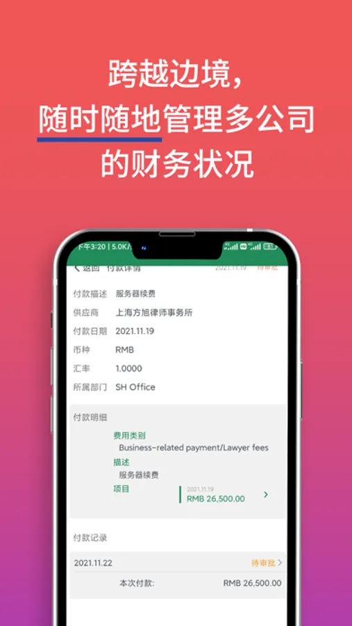 1) 实时报销与审批:所有员工在APP上即可轻松提交和审批报销与付款申请