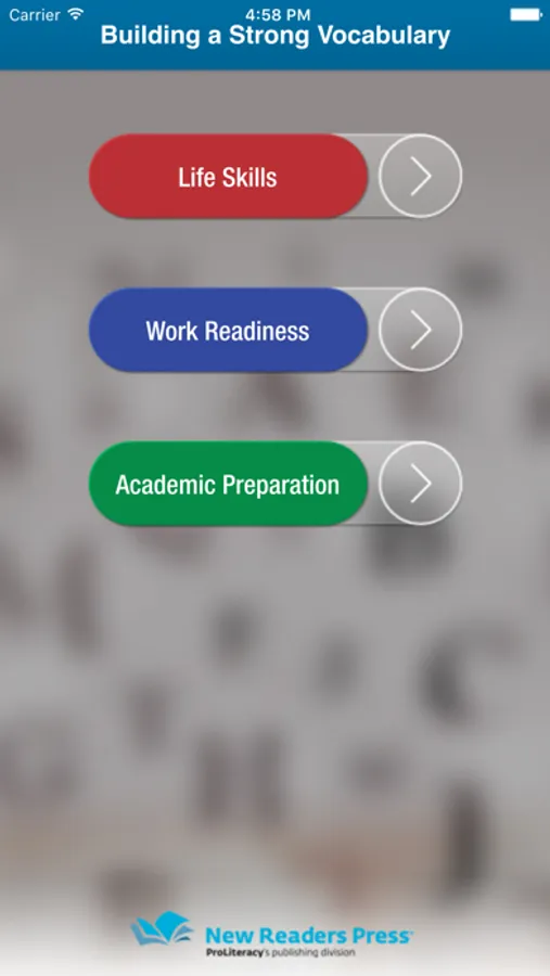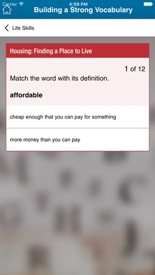 Practice matching words with their definitions and improve your vocabulary. Building a Strong Vocabulary is a 3-book series from New Readers Press. This app will help you learn new words from the books.