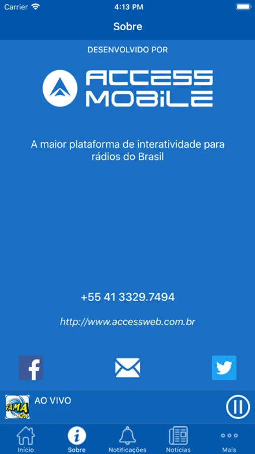 - Conversar com a Rádio através de um chat gratuito e ilimitado