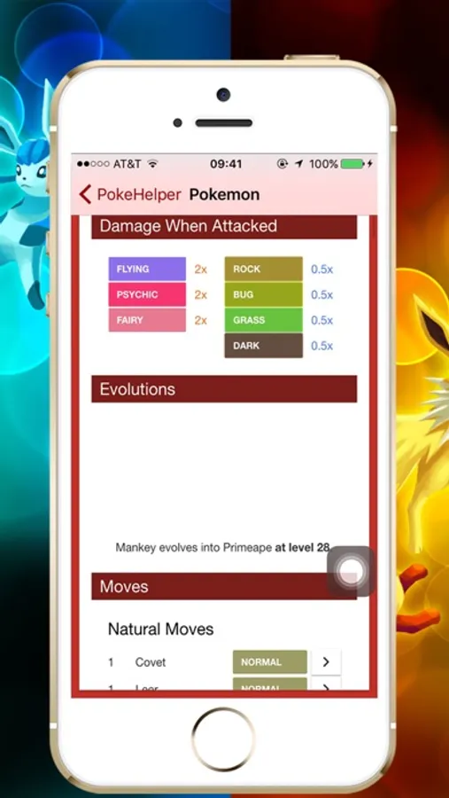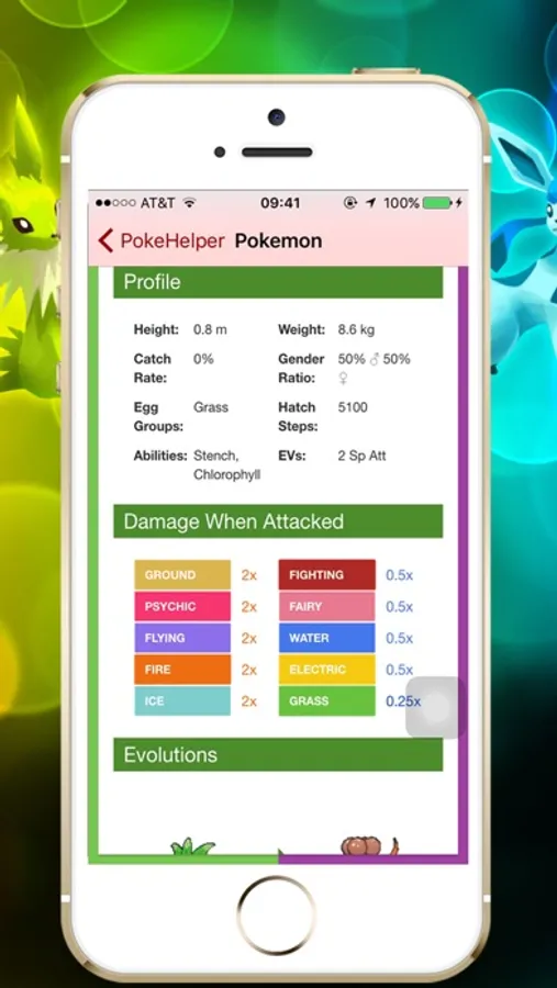 Detailed help & guide information with the basics, such as what the Pokémon looks like, its type, height, weight, and evolutions, and go from there to explore a rich trove of Pokémon details. You can find your Pokémon's stats, its moves, TMs you can use on it, its Abilities, all its Pokédex descriptions, its Egg Group, and even what type of moves are strong against it.