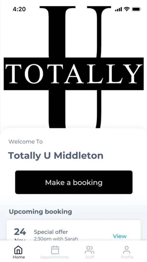 The Totally U Middleton app makes booking your appointments and managing your loyalty points even easier. You're just a few taps away from feeling good and looking great!