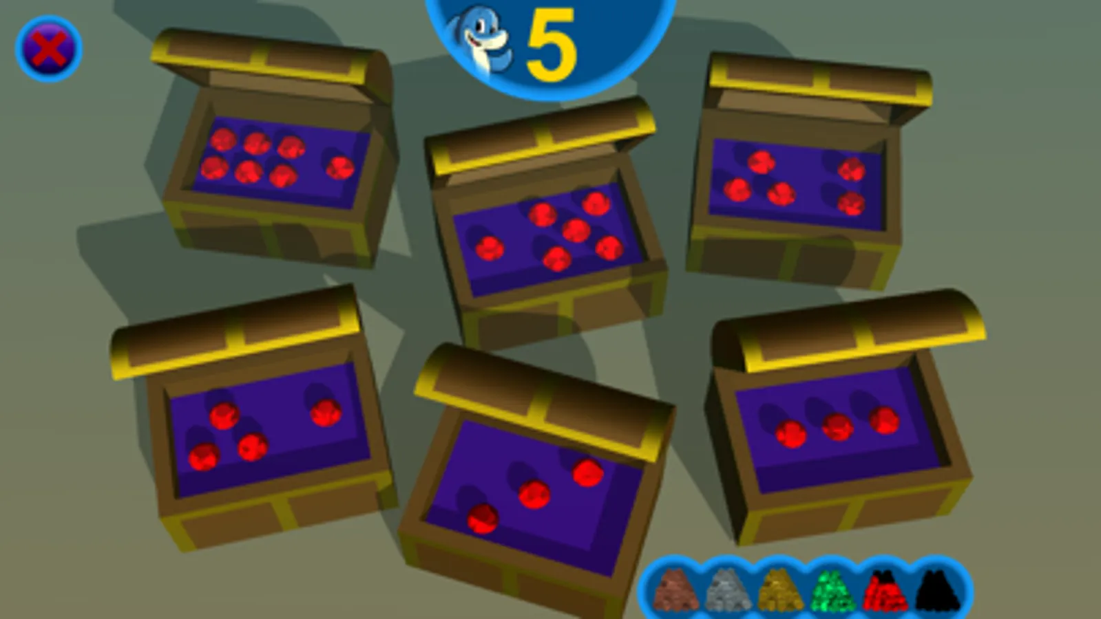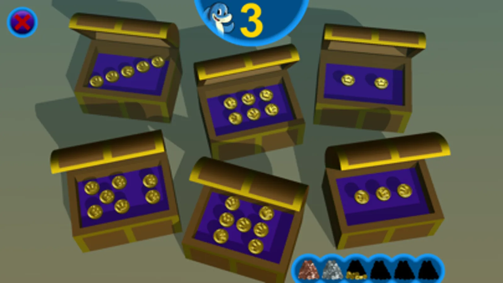 Trip’s Treasures is a fun exercise in “subitizing,” an early math skill. Help Trip the Dolphin find the right number of treasures and watch your piles of loot grow!