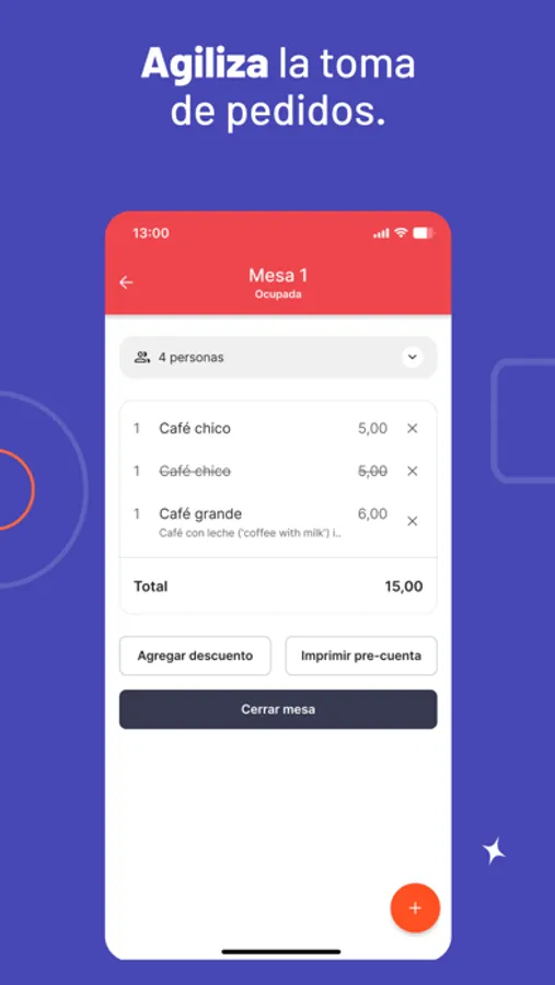 Si se cuenta con una impresora, al ingresar el pedido en la aplicación, se puede hacer que se imprima la orden en la cocina para que comience la preparación del plato inmediatamente.