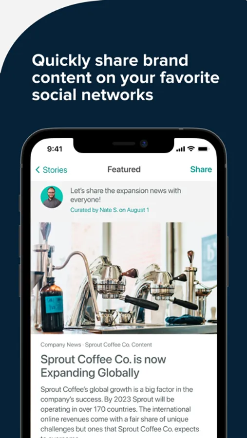 Advocacy by Sprout Social is an employee advocacy platform that gives your employees a simple way to share curated, pre-approved content across their social networks.