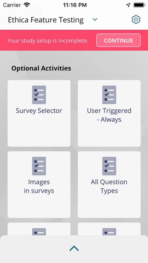 During your participation, you occasionally will be asked short survey questions. Depending on the study, you also might be asked to provide your location information or exercise habits. None of these are mandatory and you can drop out at any time. Ethica always reminds you of the data you are providing.