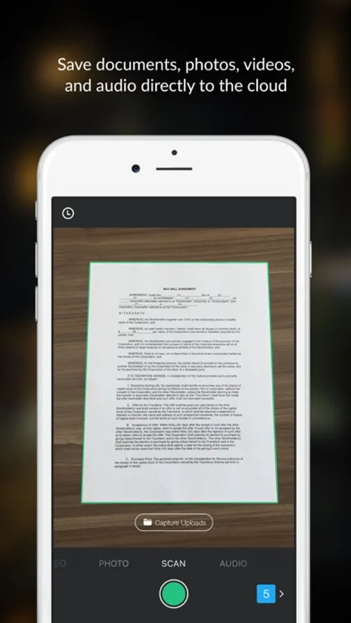 • Scan documents, snap photos and videos or record audio files, save directly to the cloud and share securely with anyone