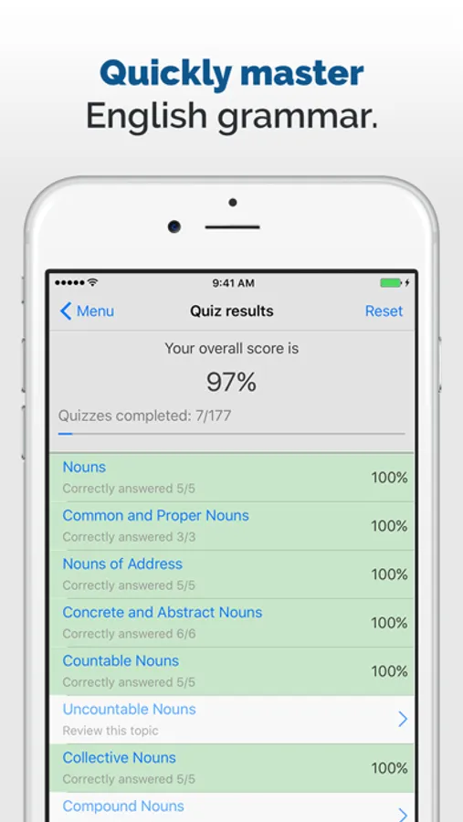* 175+ interactive grammar quizzes designed to help you retain what you've learned.