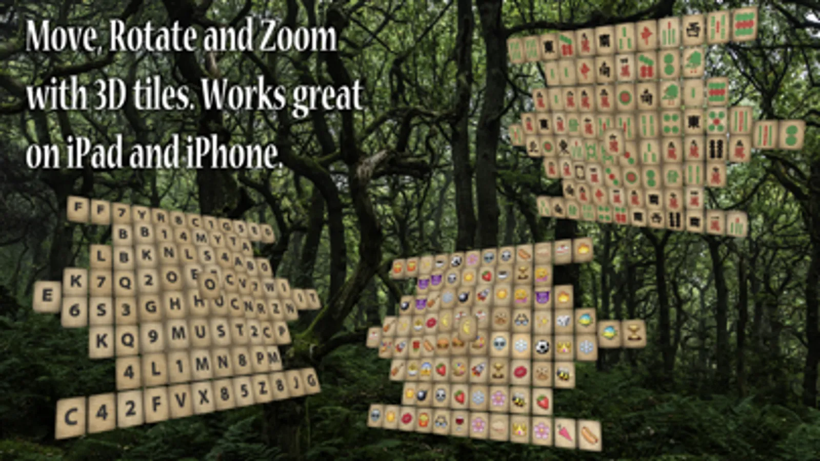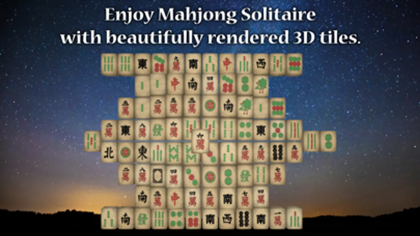 Relax while matching tiles in this classic game. Choose from 15 different tile sets, more than 100 unique layouts and 10 different backgrounds. This game includes all the features you'd want: hint, undo, shuffle, marking, a timer and more. The 3D tiles can be rotated, moved and zoomed to easier gameplay on small devices.