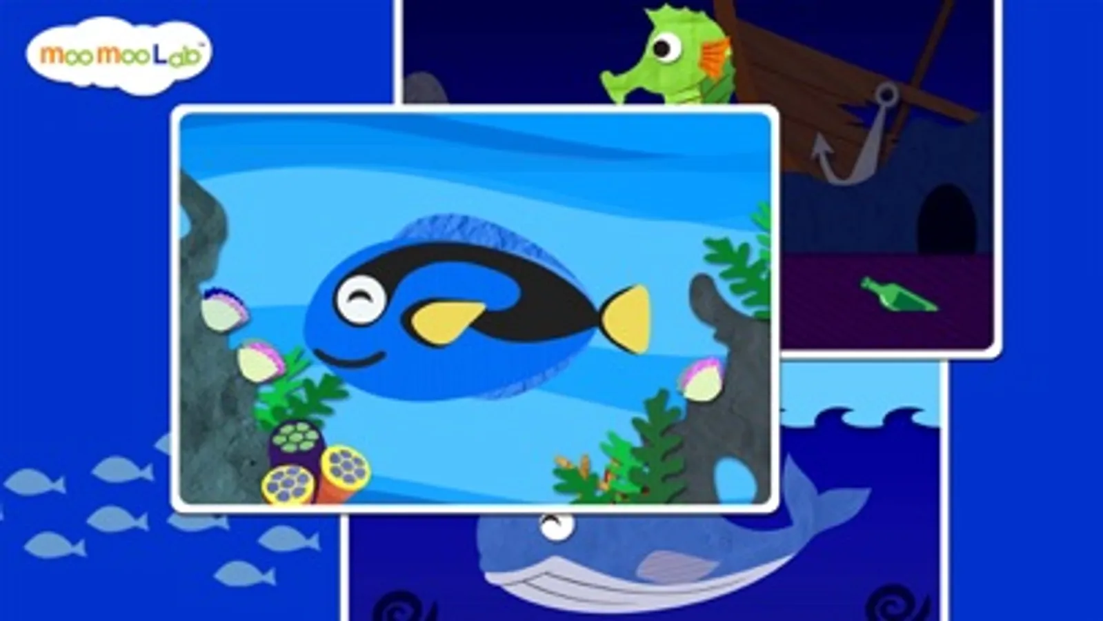 15 sea animals with unique sounds and animations. See how the animals come alive when touched.