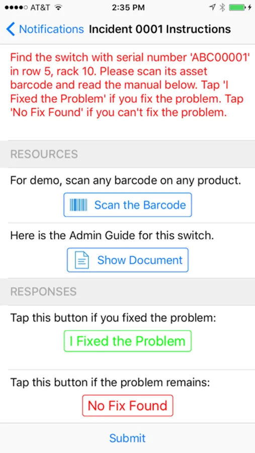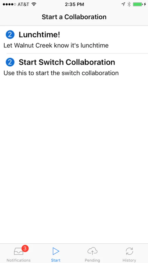The VANTIQ app provides efficient mobile collaborations between people and automation systems through the delivery of notifications to mobile devices. Each notification presents the mobile user with a situation that requires their input or, at least, awareness. No longer does the user have to actively monitor the automation system; critical notifications are delivered in real time as they are detected. Each notification presents a customized page that allows the user to quickly assess the current situation and respond with their decision. Once the response has been formed the app is dismissed and the user is free to return to other activities, allowing optimal utilization of their time.