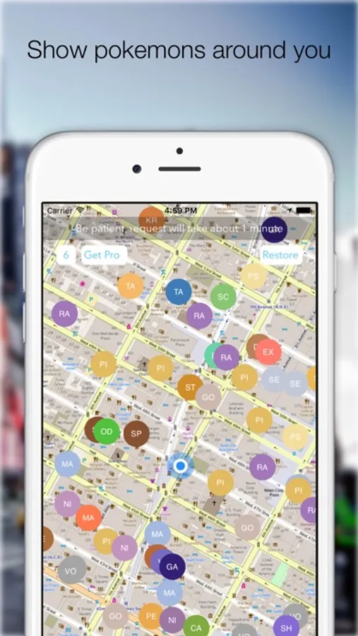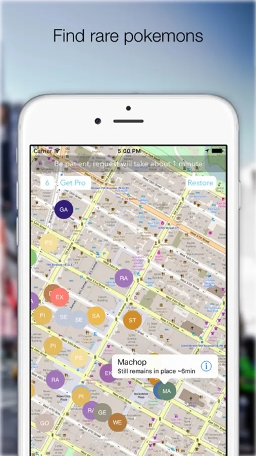 Got a rare monster? No problem! Just drop a pin on the map and wait a minute. Then you can see all pokemons - select necessary, come to location and catch him!