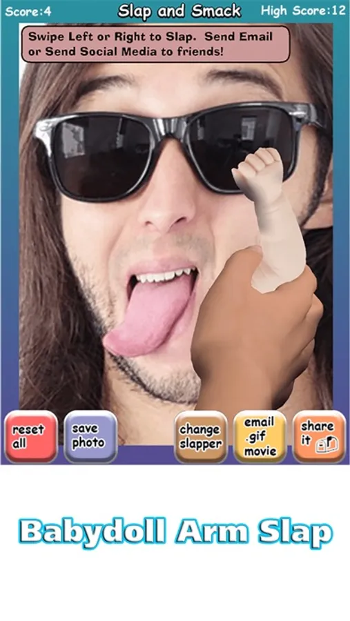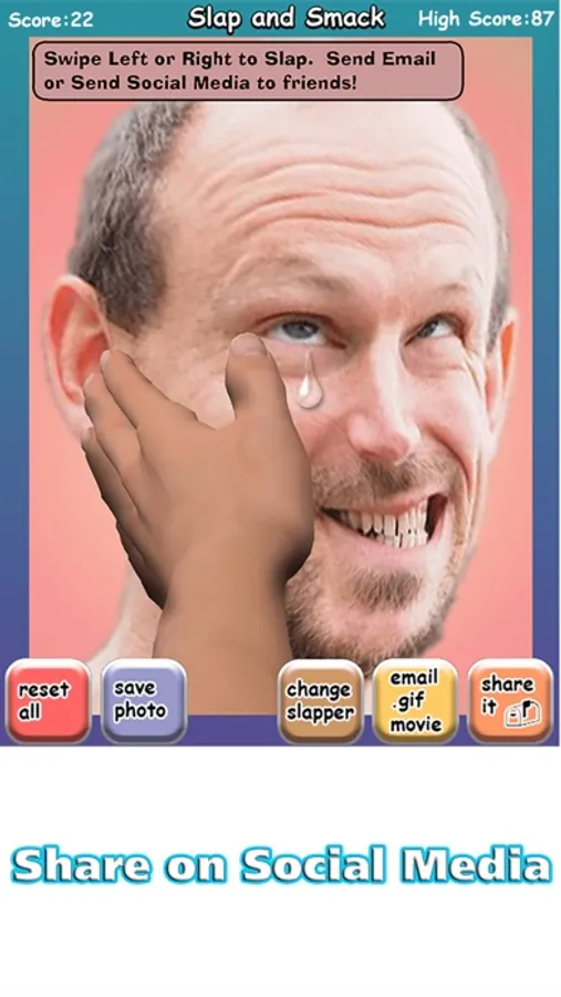 * Share the slapped pics and .gif movies via email and most social media
