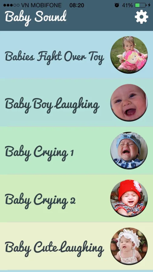 Baby Sounds contains 18 different baby sounds so you can listen to them at any time, without a data connection!