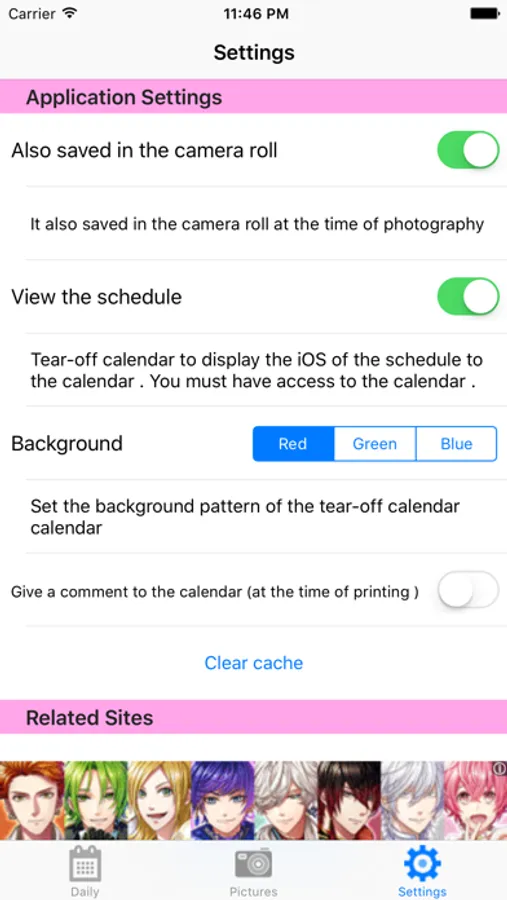 Tear-off calendar to display the iOS of the schedule to the calendar. When off will display the comments attached to the photo.