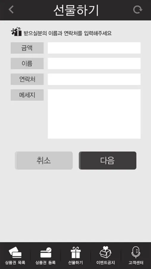 3. 선물하기 : 감사의 마음을 모바일상품권으로 선물할 수 있습니다.
