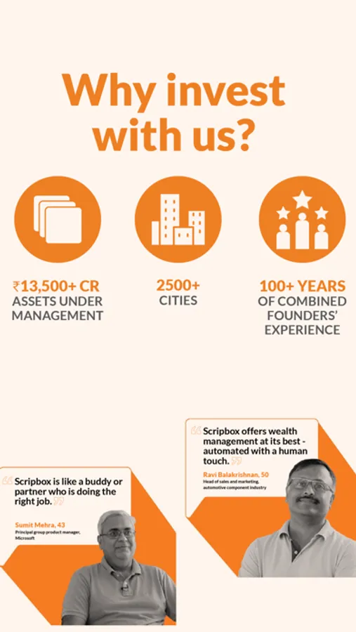 Scripbox has been India's trusted digital wealth manager since 2012, managing ₹13,500 crores worth assets and has successfully helped 50,000+ families achieve their goals.