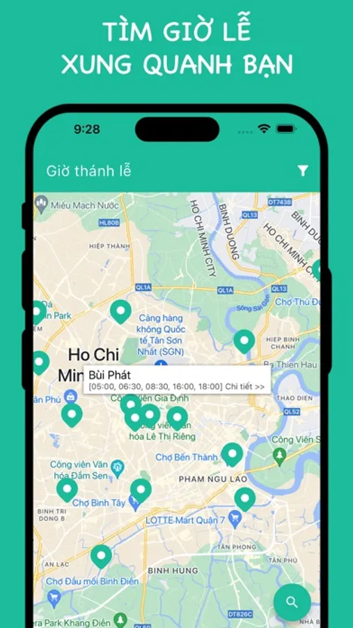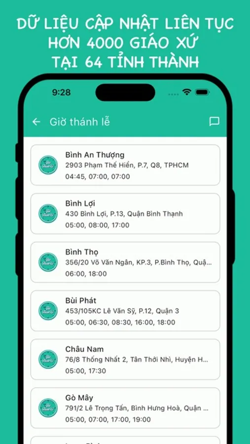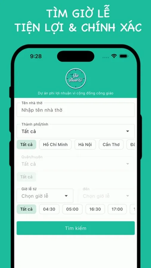 Ứng dụng Tìm kiếm giờ lễ Chúa Nhật và ngày thường các nhà thờ, giáo xứ tại Việt Nam.