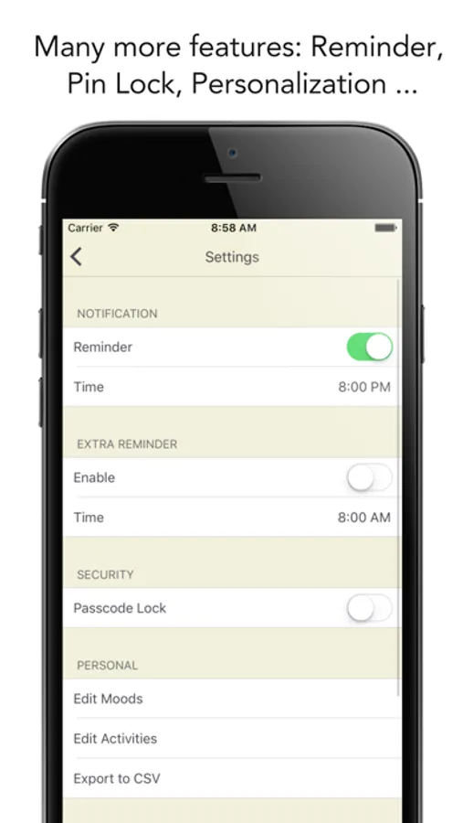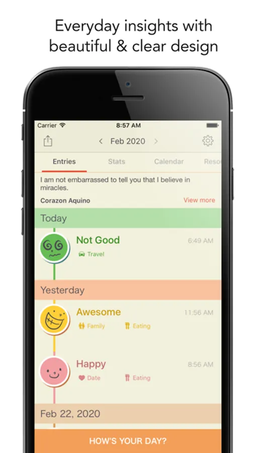 Emoly is collecting recorded moods and activities in the statistics and calendar. This format will help you to understand your habits better. Keep track of your activities and create patterns to become more productive!