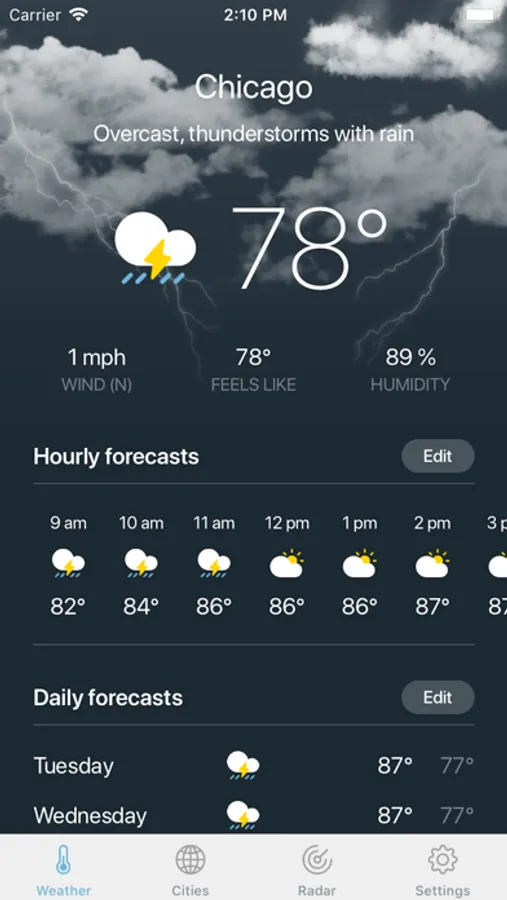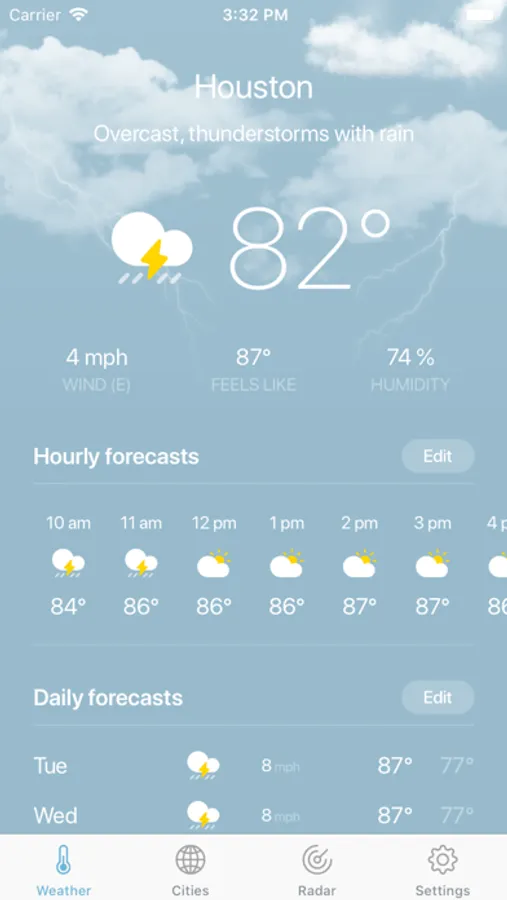 Don't let bad weather take you by surprise! Whether it is cloudy, raining, snowing or even stormy outside, Weather will provide you with current weather conditions and forecast in your city and multiple locations all around the world.