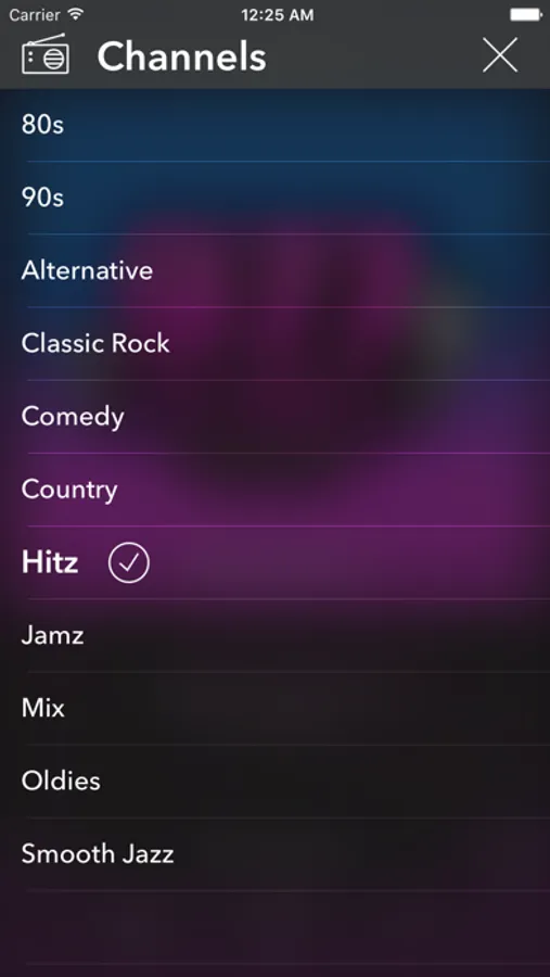 • 80s • 90s • Alternative • Classic Rock • Comedy • Country • Hitz • Jamz • Mix • Oldies • Smooth Jazz