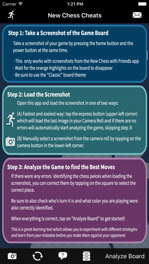 **Please note: this app only works with screenshots from the "New Chess with Friends" app (and only works with the "Classic" board and pieces theme).