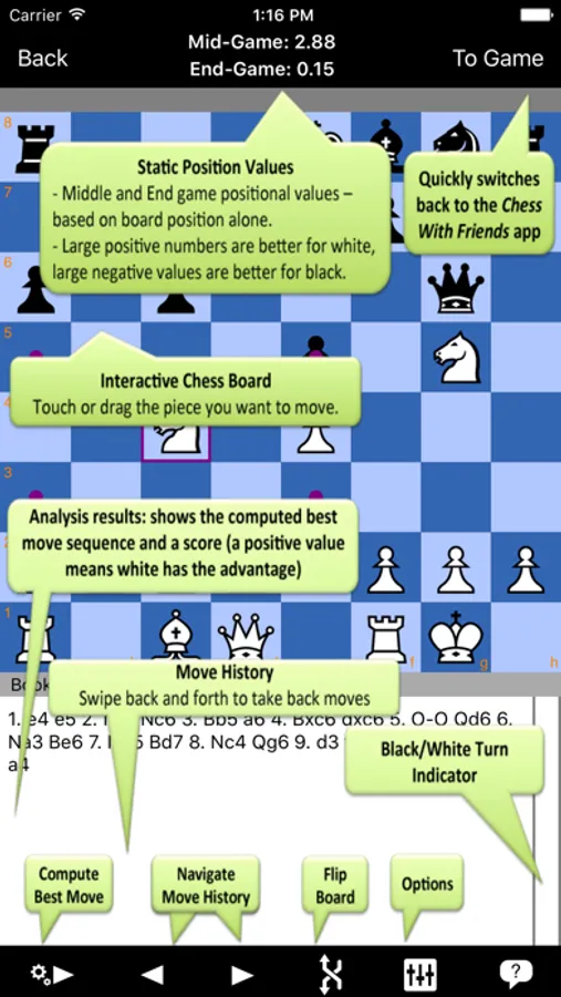 Do you play Chess with Friends? Do you want to totally annihilate your opponents? Avoid major Blunders? Improve your chess skills? Then this app is for you!!