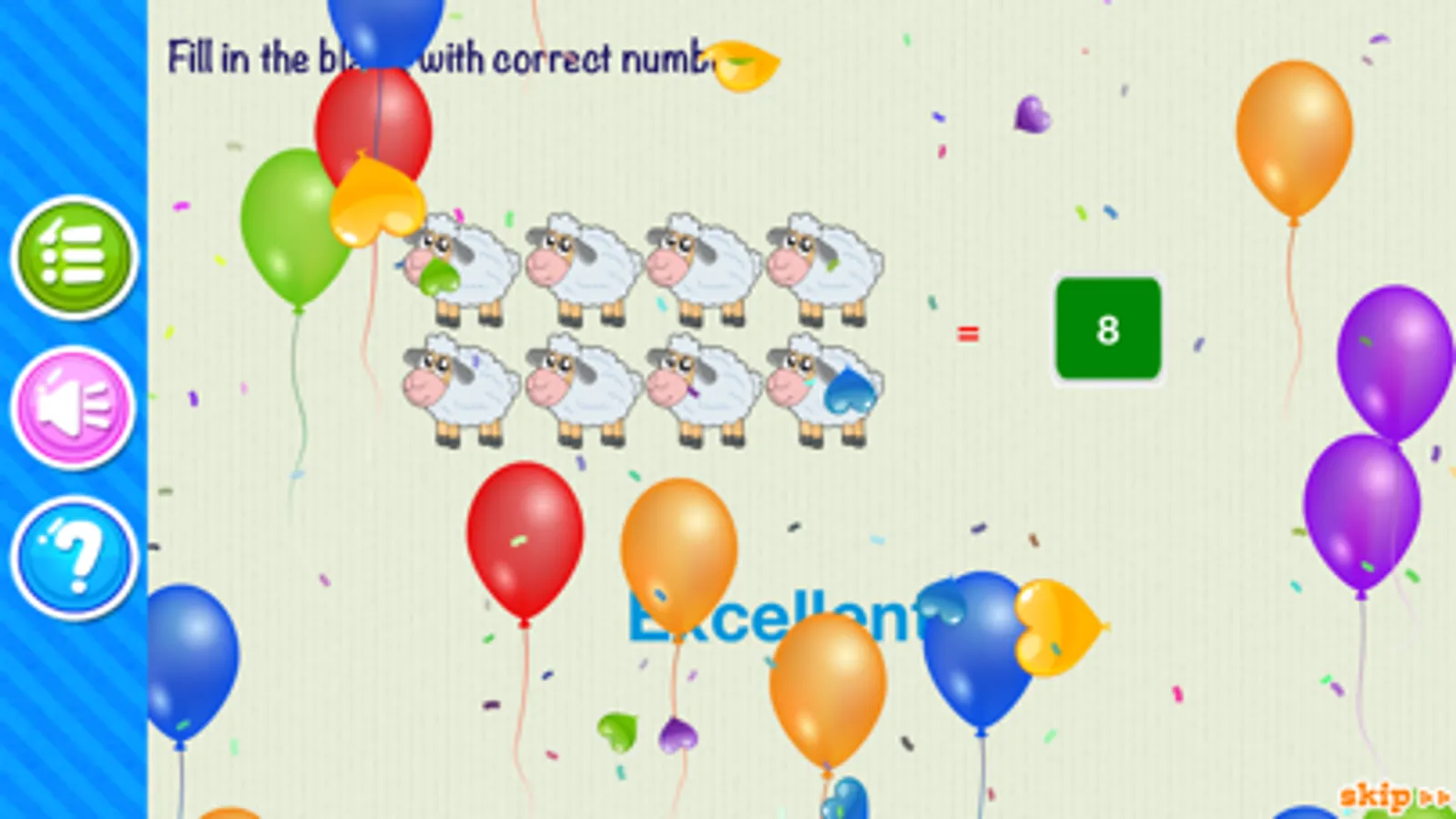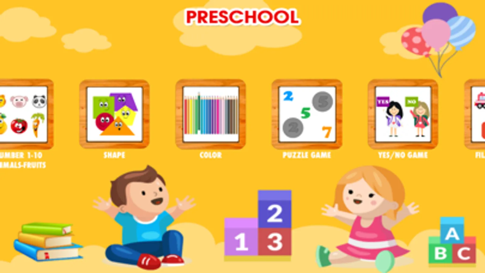 Preschool, Pre-Kindergarten Math games let Kids have fun while getting practice with early Math concepts like Number Recognition(1-10) with images demonstration of fruits, animals, dots. Kids also can play with basic Shapes and Colours. These things helps Kids first time familiar with Math language, explore new world and develop first step of logical thinking.