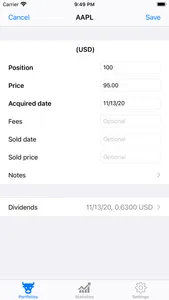 - Dividend updates: Automatic import and continuous update of dividend payments for most stocks