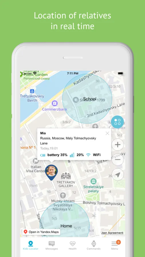 - Set alert zones and receive notifications when your child arrives to school or grandma comes back home;