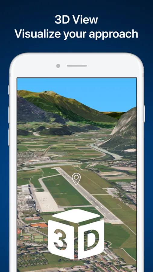 The 3D feature is available for over 20,000 airports. Get a 3D approach view and a 3D airport surroundings view. With 3D PLUS you can preview your approach like you're right there in the cockpit. You can set your distance from the runway and adjust your glide path.