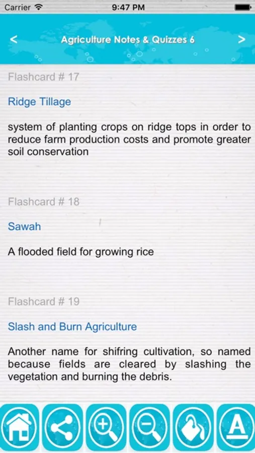 This app is a combination of sets, containing practice questions, study cards, terms & concepts for self learning & exam preparation on the topic of Agriculture.