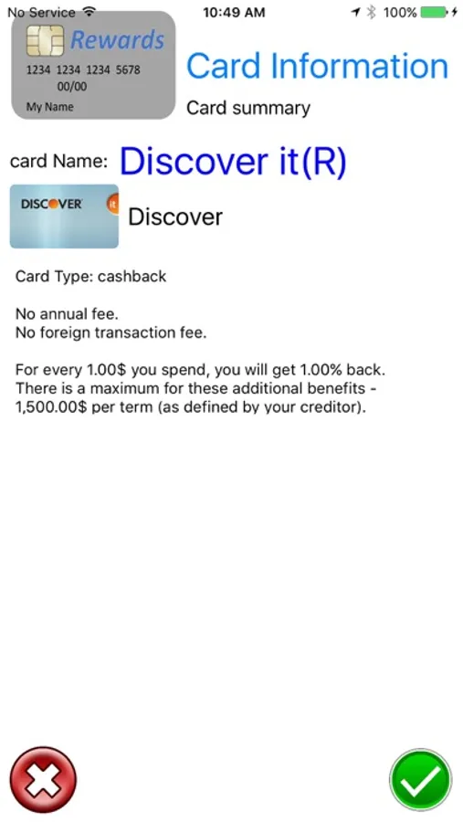 Double tap a card to see a full explanation of the evaluation for each card (for example, was there an exception that reduced or increased the default card's reward)?