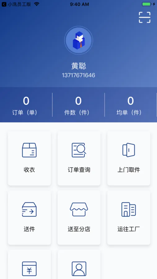 洗衣物流员工用来取送衣物、实时查询、分配订单的App。