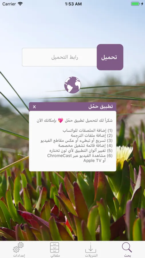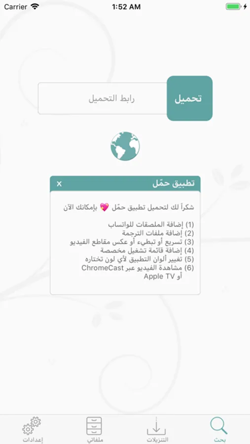 - إمكانية تخزين الروابط من خارج التطبيق دون الحاجة لدخول التطبيق ، ثم تحميلها بشكل متتابع عند الدخول