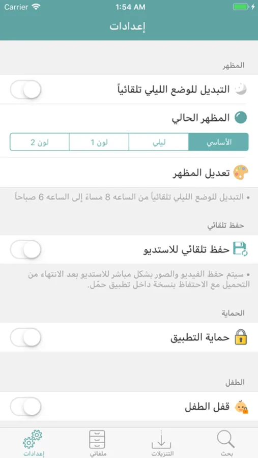 - إمكانية تغيير ألوان التطبيق وتعيين خلفية خاصة للواجهة