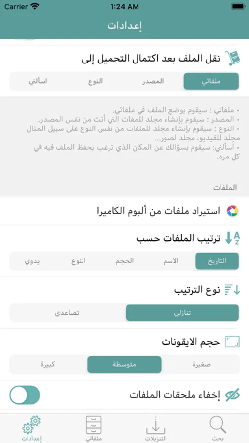 - إمكانية ترتيب الملفات بشكل يدوي