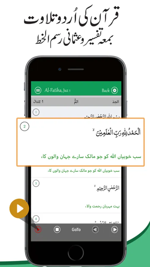 • Go To: Allows app consumer to jump to any Ayah of the present Surah