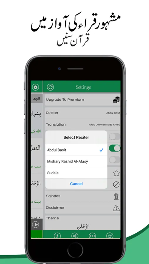 • Sajdahs: 14 places in the where one has to perform prostration in front of the Almighty are also separately mentioned in Settings.