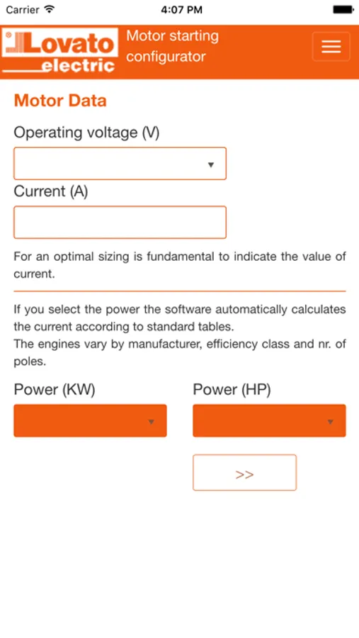 Motor starting configurator Screenshots