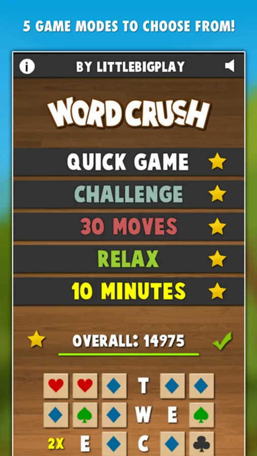 Word Crush game has 5 different game modes to choose from and over 500 000 English words!