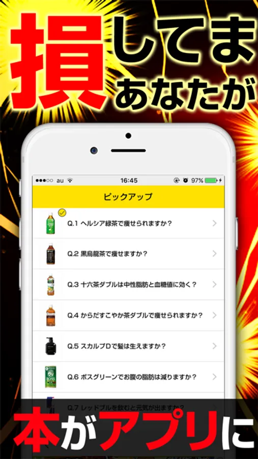 本アプリは、そんな「買ったら損する商品」を選び出して、その実態や効果を解説する本をアプリしたものです。