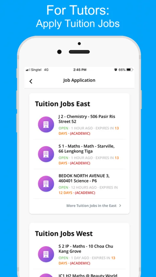 Look and apply for tuition jobs directly in the app. New assignments are posted every 10 mins.