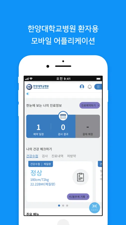 한양대학교병원 환자용 앱을 편리하게 이용할 수 있는 모바일 어플리케이션 입니다
