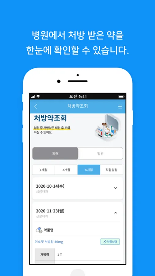 병원에서 처방 받은 약을 한눈에 확인할 수 있습니다