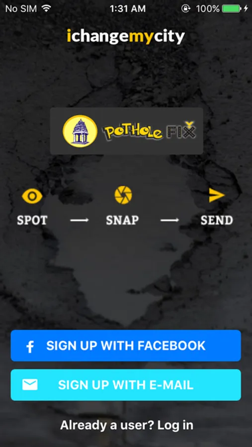 The app works on the simple formula of Spot-Snap-Send. The location of the pothole will be captured automatically by the GPS in the phone and the user will also be allowed to give the landmark of the location of the pothole for easy recognition and resolution.The citizen can also see the status of the work, whether the work has been approved, and the date and time when the pothole is being filled.