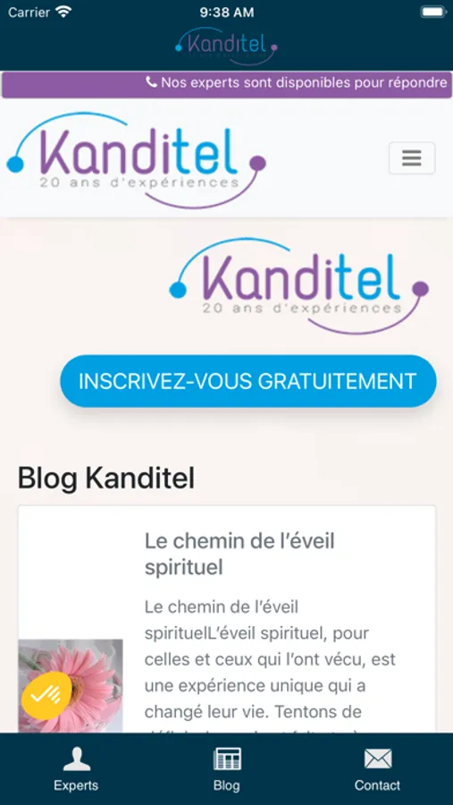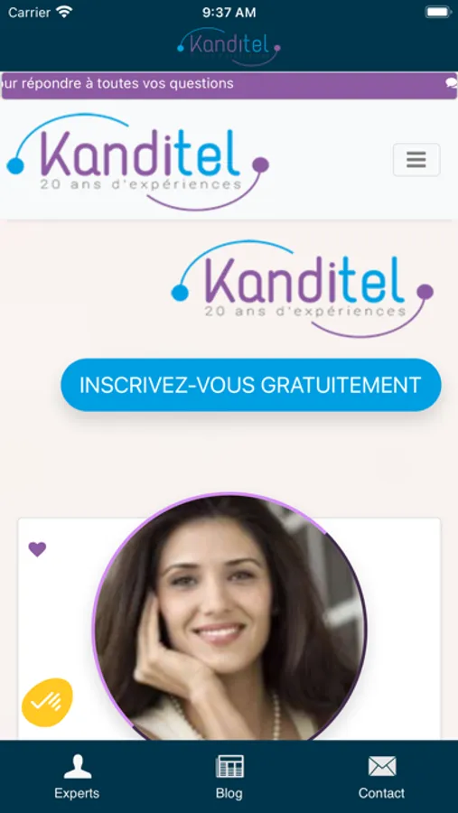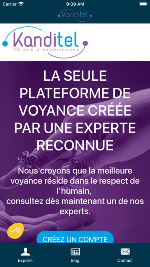 Kanditel est une plateforme nationale de mise en relation entre experts de la voyance par téléphone et utilisateurs. Spécialiste de la voyance en ligne, notre application permet une mise en relation directe, rapide et sécurisée avec les voyantes et voyants de votre choix. Vous souhaitez savoir ce que l'avenir vous réserve ? Vous avez des questions d'ordre sentimental ? Financier ? Professionnel ? Choisissez le ou la voyant(e) parmi tous les experts qui nous font confiance, vous pouvez commencer votre consultation ! Si le ou la voyant(e) par téléphone est occupé(e) ou absent(e), un SMS vous sera envoyé dès que votre expert(e) sera à nouveau disponible. Vous avez également la possibilité de contacter votre expert favori par message privé ! L'intégralité des transactions passant par notre plateforme est sécurisée. Consulter un voyant en ligne sur Kanditel, c'est simple et sûr ! Vous êtes nouveau ou nouvelle sur Kanditel et vous souhaitez consulter l'un(e) de nos expert(e)s en voyance en ligne et par téléphone ? Inscrivez-vous et bénéficiez de 10 euros offerts dès votre 1ère recharge, valable pour toute 1ère consultation ! (Recharge disponible dès 20€). Vous êtes voyante ou voyant et vous souhaitez mettre vos dons de voyance au service de nos utilisateurs ? C'est très simple, inscrivez-vous directement en ligne sur notre application afin de bénéficier de l'un des meilleurs taux de rémunération du marché de la voyance en ligne. Quelle que soit l'expertise dont vous avez besoin, vous trouverez toujours un spécialiste de la voyance en ligne disponible sur Kanditel ! La confidentialité des données échangées entre experts de la voyance et consultants est 100% garantie, de plus, notre service client est disponible 24h/24, 7j/7. N'oubliez pas : 10 euros de voyance gratuite par téléphone offertes dès votre 1ère recharge achetée ! Kanditel, ce sont des dizaines d'experts de la voyance par téléphone à votre disposition, où vous voulez, quand vous voulez, c'est vous qui choisissez ! Sur Kanditel, pas de numéro de téléphone surtaxé, le tarif à la minute est clairement indiqué sur la fiche de chaque voyant que vous consultez. Pour retrouver confiance en l'avenir, qu'il soit d'ordre personnel, sentimental, professionnel ou financier, notre équipe d'experts spécialisés dans la voyance par téléphone est à votre écoute et saura vous aider à retrouver l'équilibre et la sérénité ! Nos experts voyants sont authentiques et spécialement sélectionnés pour vous, les nombreux commentaires positifs déposés par nos utilisateurs en témoignent, vous pourrez déposer votre avis en fin de consultation, c'est gratuit ! Sur Kanditel, la voyance par téléphone, c'est simple, rapide, sûr et efficace !