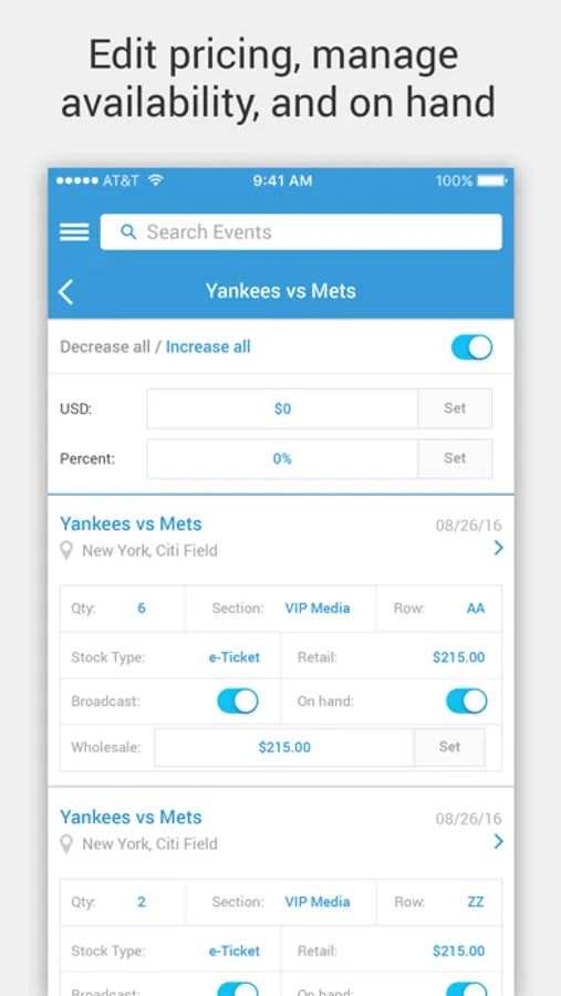 - Manage prices on inventory