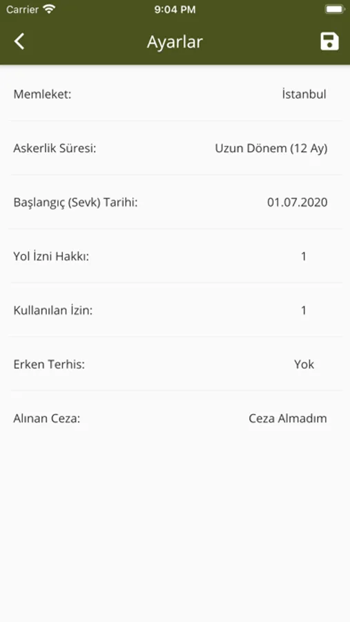 Ayarlar kısmından askerlik bilgileri girildikten sonra kaydet diyerek şafağı hesaplayabilirsiniz.