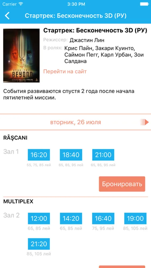 Также приложение всегда подскажет, в каком зале наилучшее 3D и где самый большой экран. Никогда выбор сеанса ещё не был так удобен.