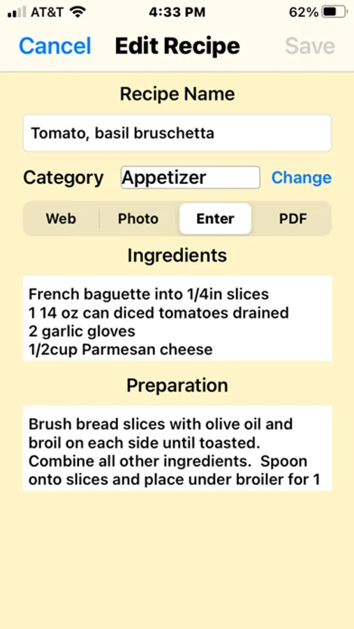 - Enter recipe ingredients and preparation steps